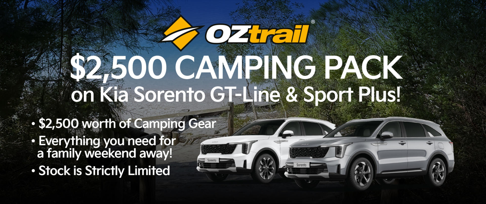 Get more out of your next getaway when you buy your new Kia Sorento with this OZtrail Camping Pack - the perfect companion for exploring the great outdoors!